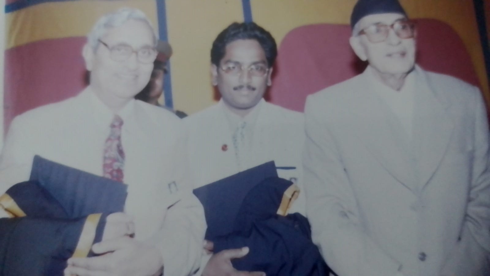 Dr. Suresh with Pri minister Sher Bahadur Deuba in 2001, BP Koirala Institute of Health Sciences Nepal